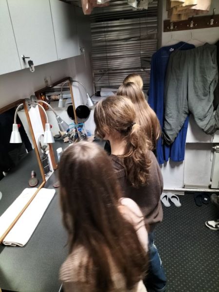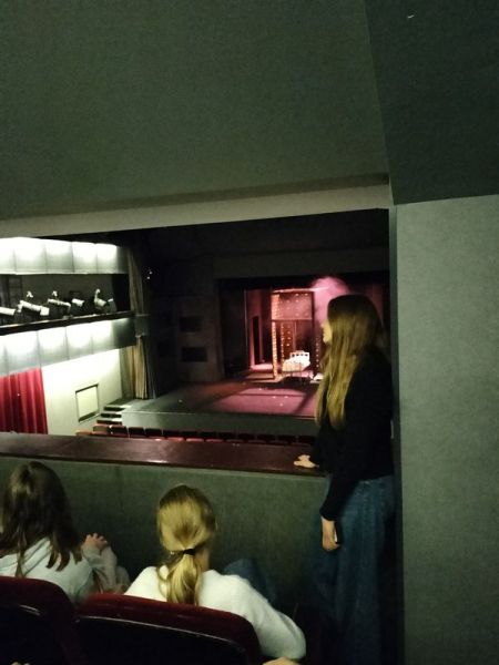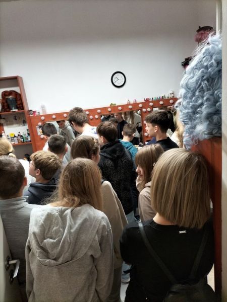 Uczniowie mogli podglądnąć także trwającą próbę przed wieczornym spektaklem, a także wejść na scenę, na której wykonali sobie pamiątkowe zdjęcie.