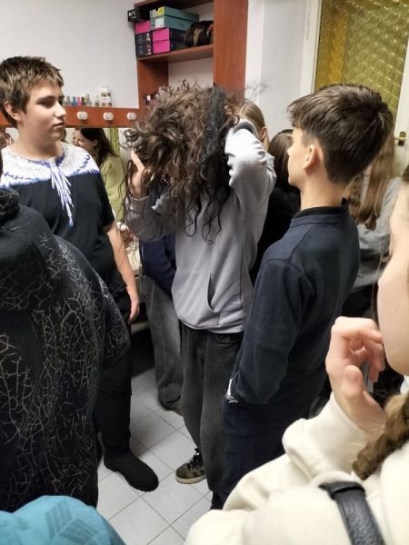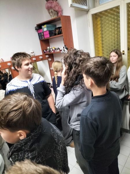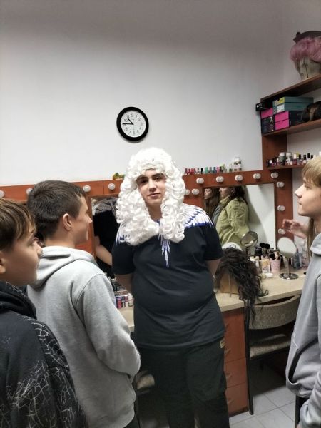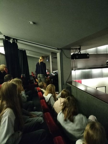 24.10. klasy 7a i 7b brały udział w warsztatach teatralnych w krakowskim Teatrze Bagatela. Spotkanie prowadziła Kaja Walden – aktorka pracująca w Bagateli. To właśnie ona oprowadziła uczniów po wszystkich zakamarkach teatru i opowiedziała o pracy i obowiązkach różnych pracowników. Klasy dowiedzały się, jak przygotowywane jest przedstawienie i opowiadała zakulisowe ciekawostki i wpadki aktorów. Uczniowie zajrzeli do reżyserki, garderoby, gdzie mogli przymierzyć różnego rodzaju peruki, a także do pana odpowiedzialnego za nagłośnienie i pana oświetleniowca.