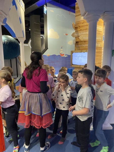 27 listopada uczniowie klas 2a, 2b i 3b udali się na wycieczkę do katowickiego centrum nauki i zabawy Bajki Pana Kleksa Uczniowie spotkali się z Janem Brzechwą i wyruszyli na poszukiwania zaginionych przedmiotów. Wędrowali przez Krainę Szpaka Mateusza, sprawdzali swoją sprawność w Pokoju Zagadek, rozpoznawali różne zapachy zamknięte w magicznych pojemnikach. Nasi uczestnicy wyprawy odwiedzając kolejne interaktywne sale, musieli wykazać się zręcznością, odwagą, sprytem i wyobraźnią, ponieważ na każdym kroku czekało na nich mnóstwo atrakcji m. in.: ukryte w szufladach sekrety Pana Kleksa, leczenie chorych sprzętów, furtki do bajek, zjeżdżalnie i tory przeszkód. Wycieczka zapewniła dzieciom niezapomnianą zabawę, która obudziła w nich kreatywność oraz ciekawość poznawczą.