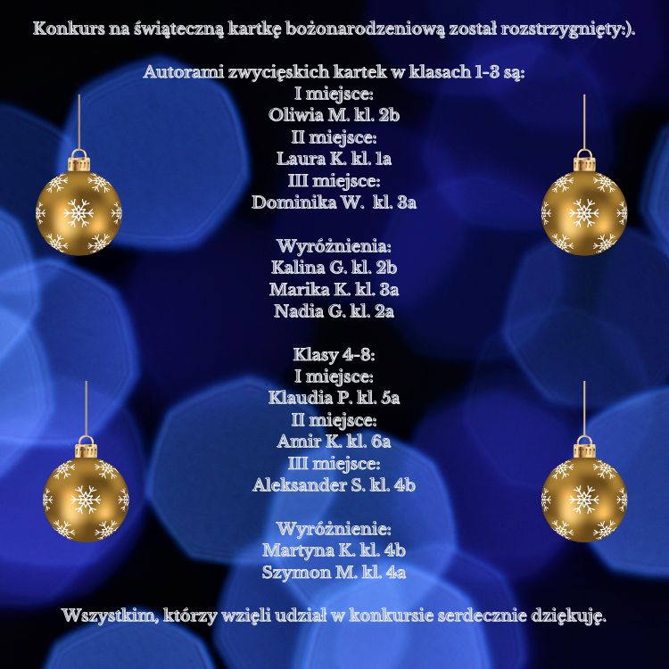 Wyniki konkursu na kartkę bożonarodzeniową